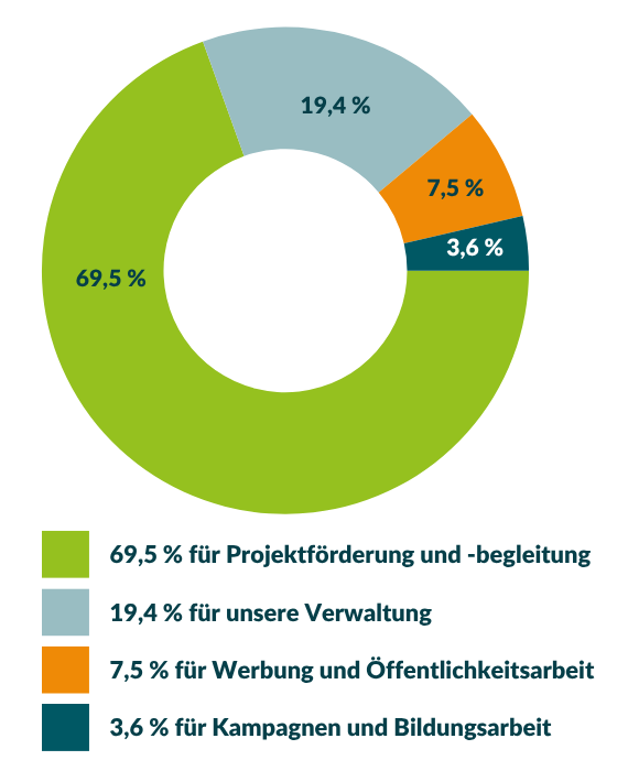 Wir setzen deine Spende effizient und wirkungsvoll ein, damit der größtmögliche Teil des Geldes dort ankommt, wo er am dringendsten gebraucht wird: in den Waldprojekten für Klimaschutz und Biodiversität.